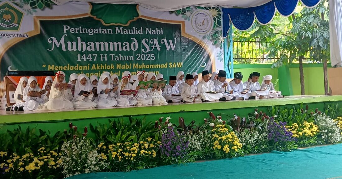 Jakarta, 12 September 2025 – Dilaksanakannya peringatan Maulid Nabi Muhammad SAW 1447 satu hari setelah kegiatan LOKETA 2025. Agenda ini telah tersusun secara khidmat dengan mengawali pembacaan Tilawatil Quran oleh para Siswa-Siswi kelas 1 s/d 6 dari Ekstrakurikuler Tilawah MIN 10 Jakarta. Kemudian dilanjutkan pembacaan Qishoh Maulid Nabi Muhammad SAW oleh segenap siswa Ekstrakurikuler Hadroh MIN 10 Jakarta, sambutan-sambutan yaitu sambutan oleh ketua pelaksana yaitu Bapak Masriyanto, S.Pd.I, sambutan oleh Pengawas Madrasah yaitu Ibu Rusdah, S.Ag., M.Pd, sambutan oleh kepala Madrasah yaitu Bapak Ahmad Ripai, S.Ag, dan sambutan terakhir oleh ketua komite MIN 10 Jakarta Timur yaitu Ibu Lianah, S.Pd.I, serta dimeriahkan oleh beberapa penampilan-penampilan seperti Nasyid dan lain-lain dari kelas 1 s/d 6, dan diisi oleh Kak Faqih (pendongeng) dengan membawakan tema “Meneladani Akhlak Nabi Muhammad SAW sebagai Bekal Membangun Pribadi yang Unggul”.